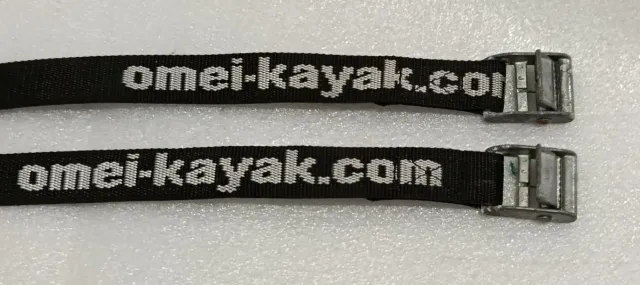 Detalles del productoJuego de dos cinchas de sujeción para kayak de la marca Omei Kayak. Incluyen hebillas metálicas para un ajuste seguro.