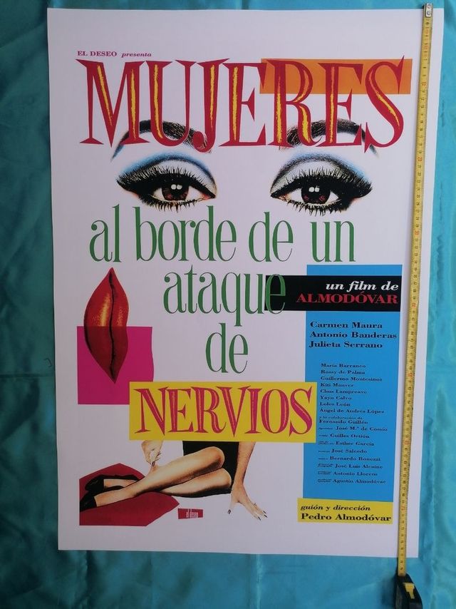 Detalles del productoNuevo. Precioso cartel, sobre el póster de la famosa película de Almodovar : Mujeres al borde de un ataque de nervios ". 77 x 53 cm. En papel grueso de 180 grs mate. OCASIÓN. Envío gratis por correo certificado.
