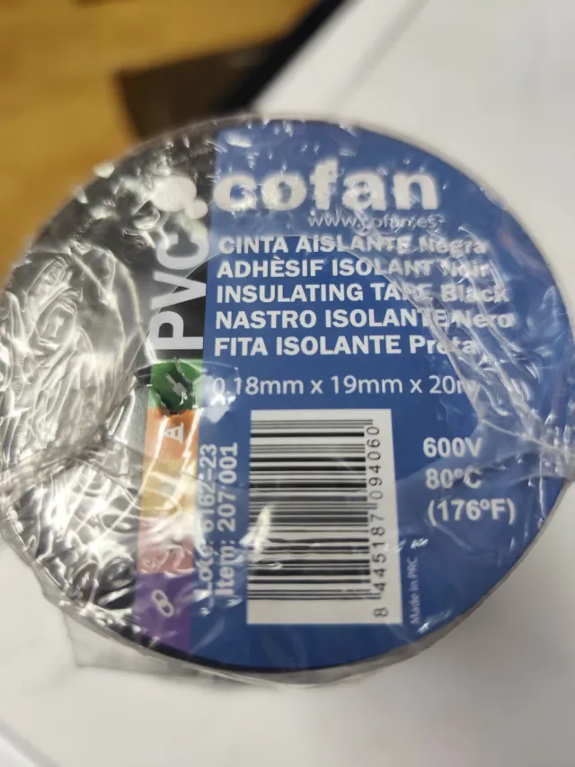 Detalles del productoRollo de cinta aislante de PVC de la marca Cofan.