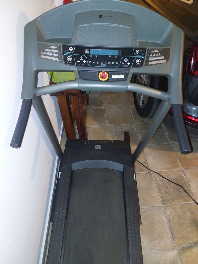 Cinta para andar y correr DOMYOS ESSENTIAL RUN. Seminueva, en perfecto estado de funcionamiento. Esta cinta nueva está en decatlon por 379 euros.