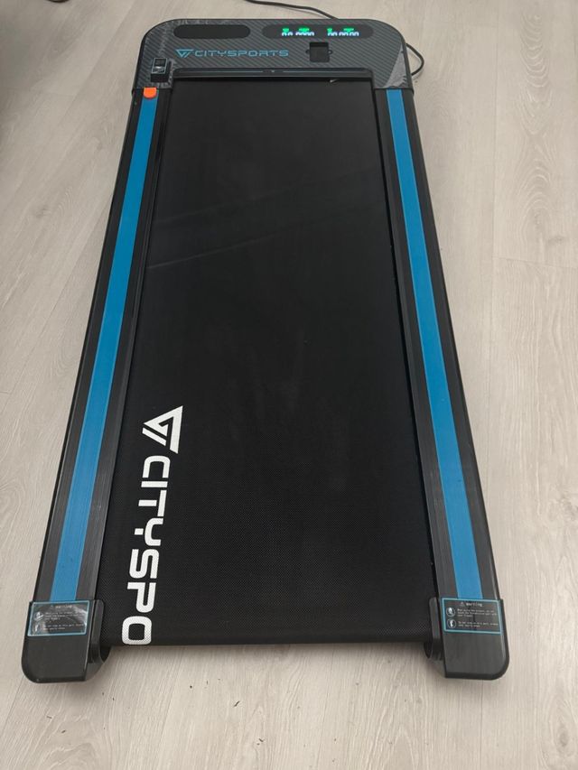 Detalles del productoVendo cinta de correr Citysports en perfecto estado. Es compacta y fácil de guardar. Tiene bluetooth para poner música en un altavoz integrado y mando a distancia para controlar la velocidad de la cinta. No ocupa nada, la puedes meter debajo de la cama o en el hueco entre el armario y la pared. Utilizada dos veces.