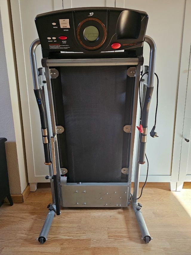 Cinta de andar con ajuste de velocidad, frecuencia cardiaca y manual de instrucciones.