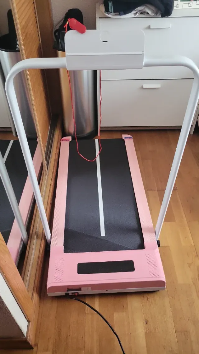 Detalles del productoCinta de andar compacta y plegable en color rosa. Ideal para mantenerte activo en casa.