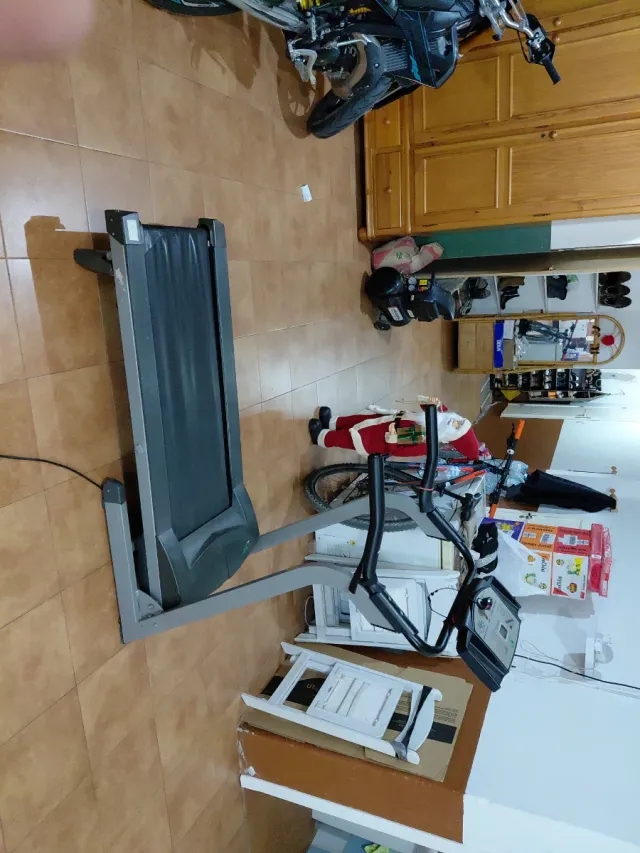 Cinta de correr para ejercicio en casa. - Diseño en gris y negro. - Pantalla digital integrada.