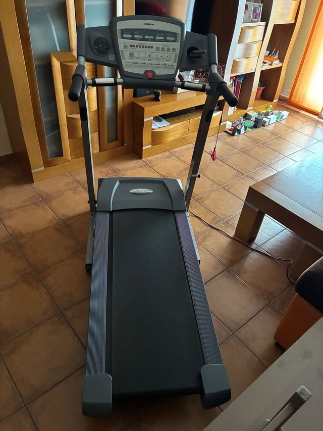 Detalles del productoCinta de correr de la marca BH Fitness. Diseñada para el ejercicio en casa, cuenta con una consola de control y una banda de rodadura amplia. Tiene 3 niveles de inclinación manual hasta el 12%.6 programas predeterminados. Dispone de ventilador.