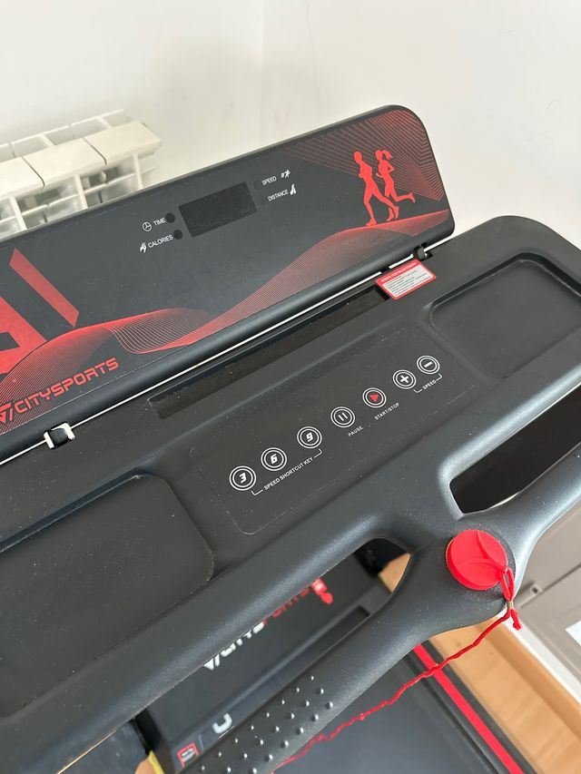 Detalles del productoCinta de correr Citysports con diseño plegable, ideal para optimizar el espacio en casa. Cuenta con pantalla digital para visualizar tus entrenamientos. Se conecta al móvil por bluetooth