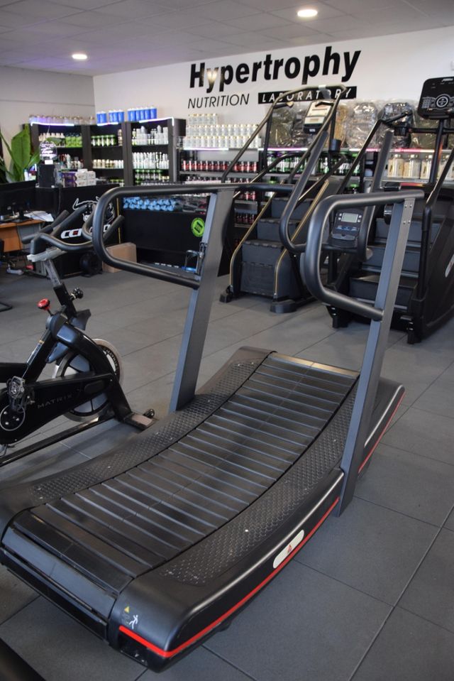 Detalles del productoCinta de correr de diseño curvo, ideal para entrenamientos de alta intensidad.
