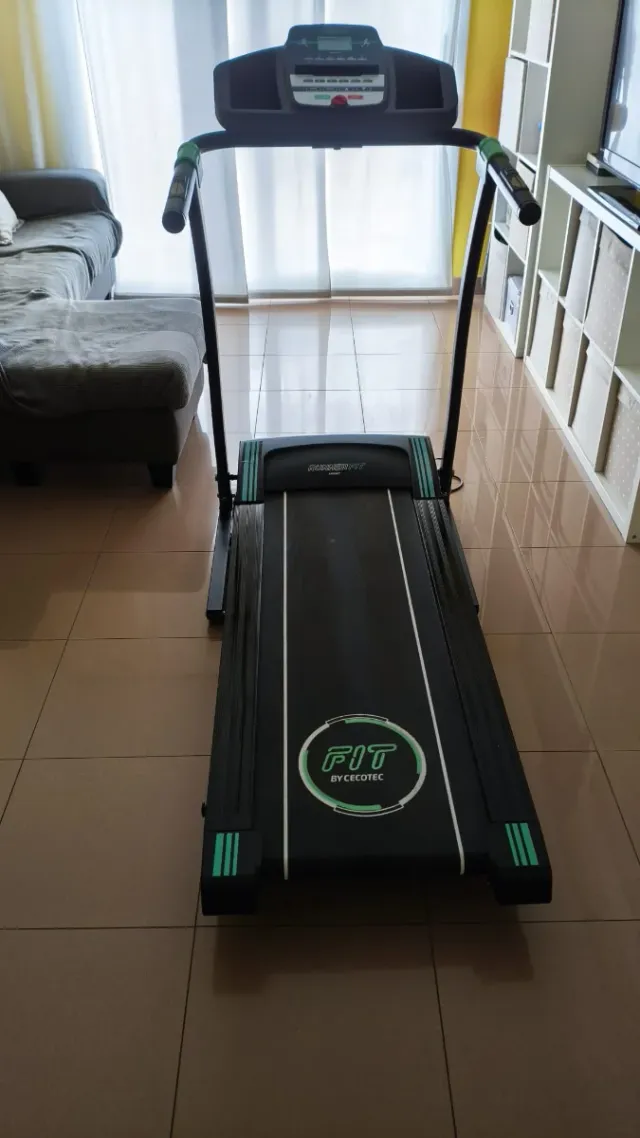 Detalles del productoCinta de correr de la marca FIT by Cecotec. Diseño moderno en color negro con detalles en verde.