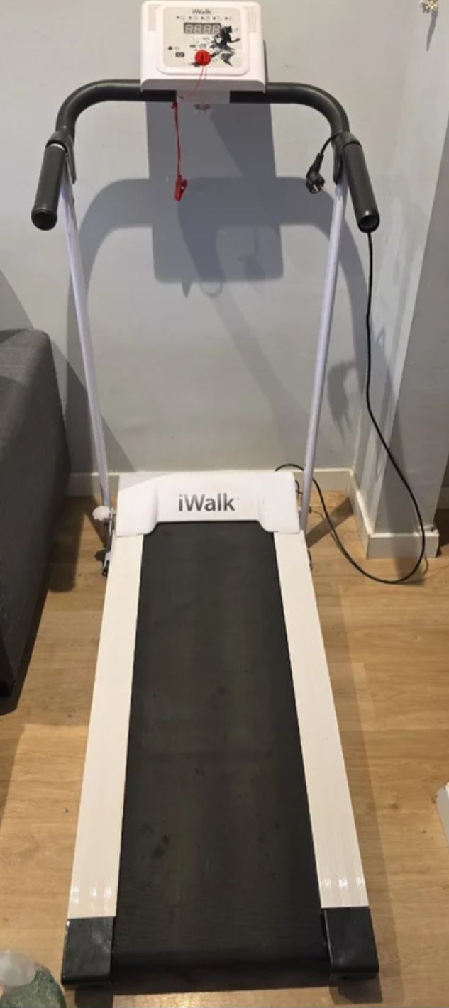 Detalles del productoCinta de correr IWalk de color blanco, ideal para mantenerte activo en casa. En perfecto estado. Es plegable, de aleación de acero, con 6 programas, inclinación e indicadores de velocidad, tiempo, distancia y calorías en la pantalla digital.