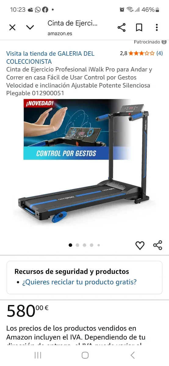Detalles del productoCinta de ejercicio profesional iWalk Pro, ideal para andar y correr en casa. Cuenta con control por gestos para ajustar velocidad e inclinación.