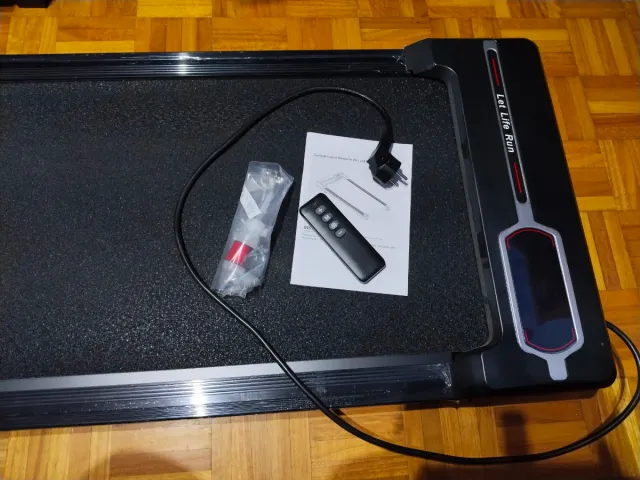 Detalles del productoCinta de correr marca Let Life Run, con control remoto y accesorios.