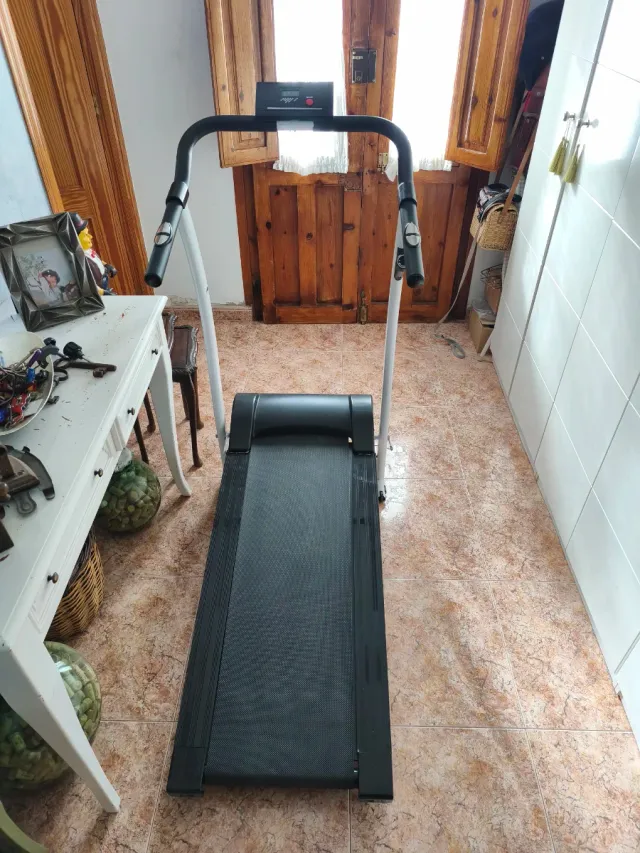 Cinta de correr manual para ejercicio en casa. Su diseño compacto la hace ideal para espacios reducidos. - Cinta de correr manual. - Estructura metálica.