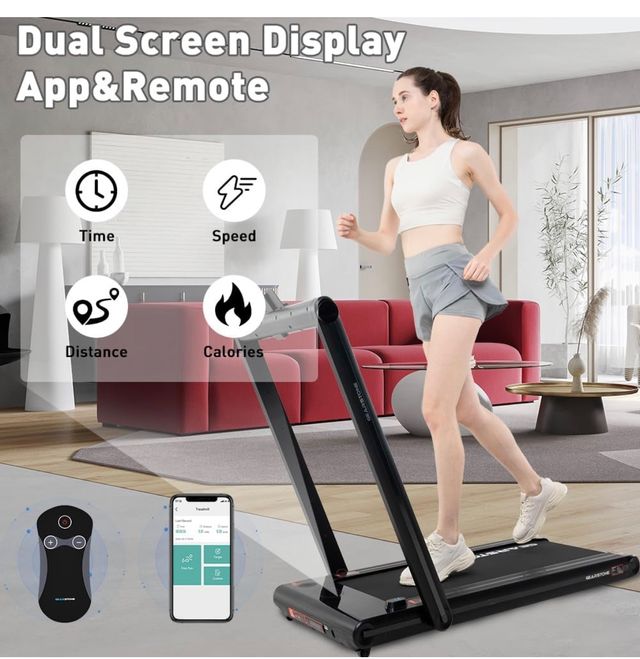 Detalles del productoProducto completamente nuevo a estrenar - Cinta de Correr eléctrica 1-15km/hG,con Bluetooth,App y Doble Pantalla LED,Velocidad máxima 15 km/h,con pasamanos y Mando a Distancia,Fitness en casa y en la Oficina.