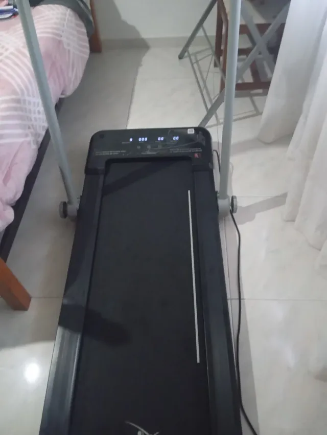 Cinta de correr compacta y fácil de guardar. - Diseño moderno en color negro. - Pantalla digital con información de entrenamiento.
