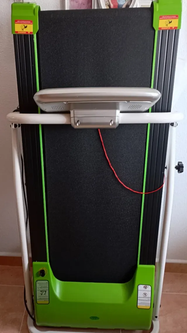 Cinta de correr plegable, ideal para entrenar en casa. Su diseño permite guardarla fácilmente. - Color verde y negro. - Estructura metálica.