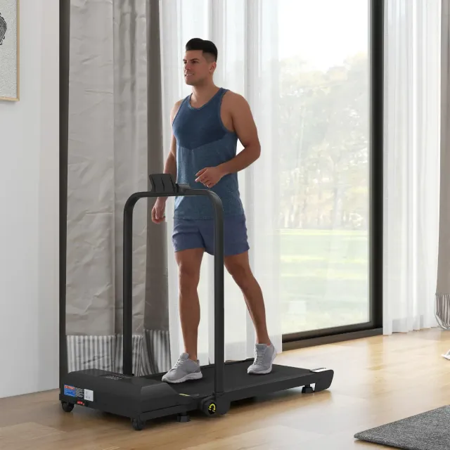 Detalles del productoCinta de andar plegable, ideal para mantenerte activo en casa. Su diseño compacto facilita su almacenamiento.
