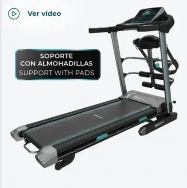 Detalles del productoCecotec Cinta de Correr Plegable DrumFit WayHome, Inclinación, Cinturón de Masaje, Mancuernas y Barras de Espuma, 1-18 km/h, 12 Programas, Superficie de Carrera Amplia Cinta de correr con gran potencia de 1500 W / 2 CV. Velocidad ajustable: de 1 Km/h hasta 16 Km/h. Automatic Tilt: sistema de inclinación motorizada que logra simular inclinaciones reales de hasta el 15%. Amplia superficie de carrera de 130 x 42 cm para entrenar con la máxima comodidad en un tamaño compacto. UltraFlex System: sistema de amortiguación avanzado formado por 10 elastómeros Panel de control con pantalla LCD que muestra el rebajon
