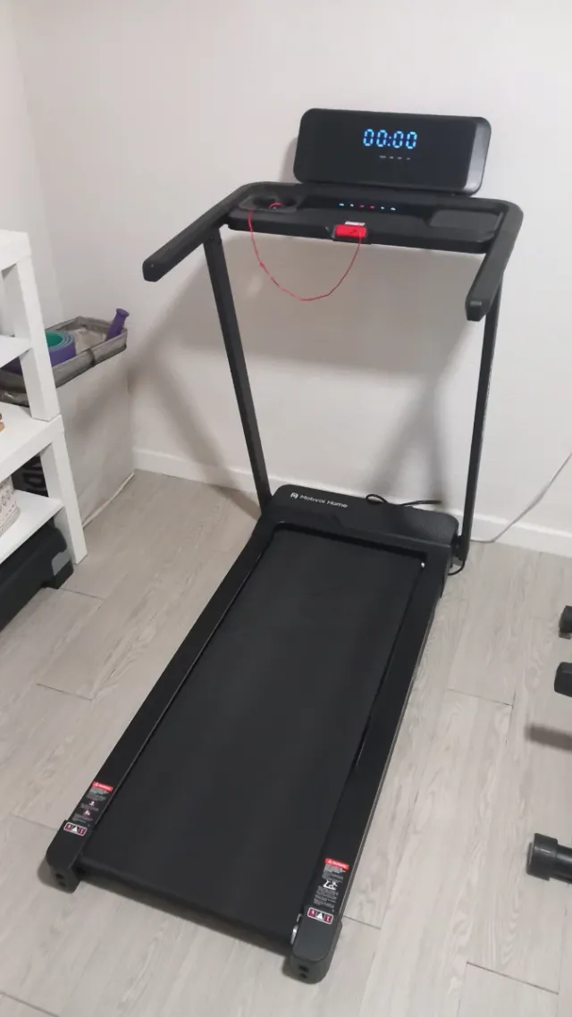Cinta de correr en color negro, con diseño moderno y compacto. - Pantalla digital. - Soporte para móvil o tablet.