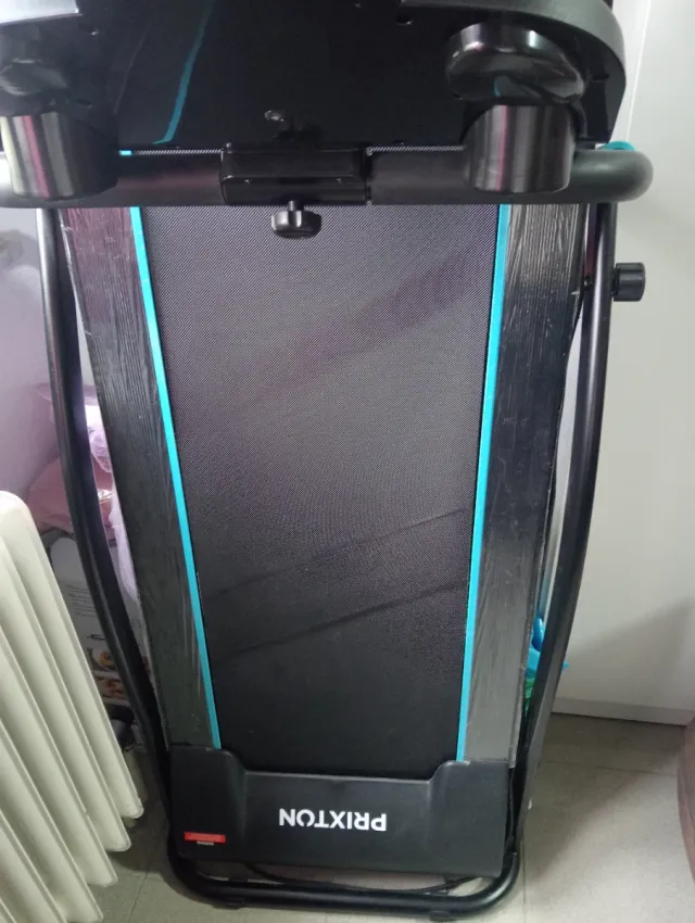 Detalles del productoCinta de correr PRIXTON en color negro con detalles en azul.