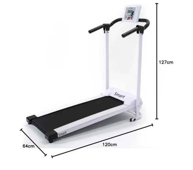 Detalles del productoCinta de correr Smart, ideal para mantenerte activo en casa. Su diseño es blanco y negro.