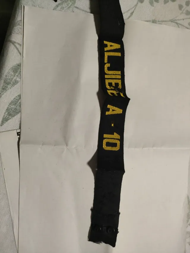 Cinta de gorro con el nombre Aljibe A-10. 100% original - Diseño en color negro con letras doradas.