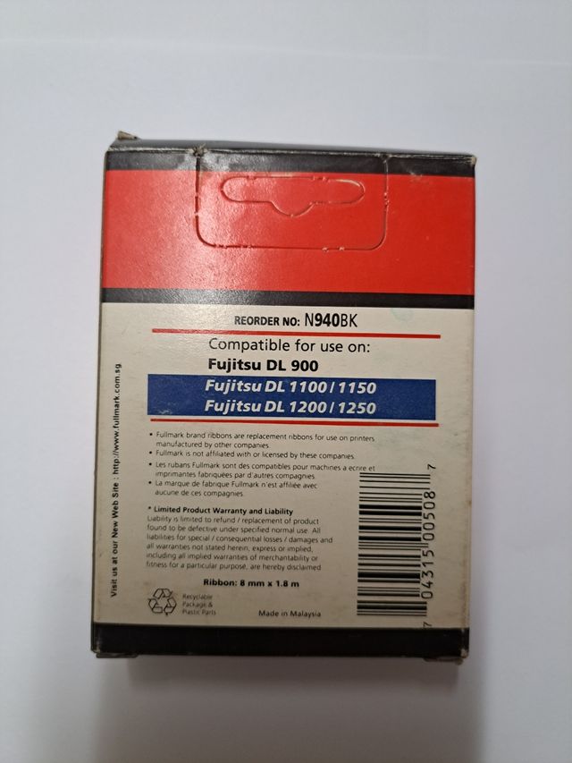 Detalles del productoCinta para impresora matricial para FUJITSU DL 900, DL 1100, DL 1150, DL 1200 DL 1250 y otros modelos compatibles.