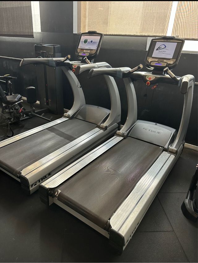 Detalles del productoDos cintas de correr profesionales de la marca TRUE, fabricadas en EE. UU. Ideales para gimnasios o uso doméstico intensivo.