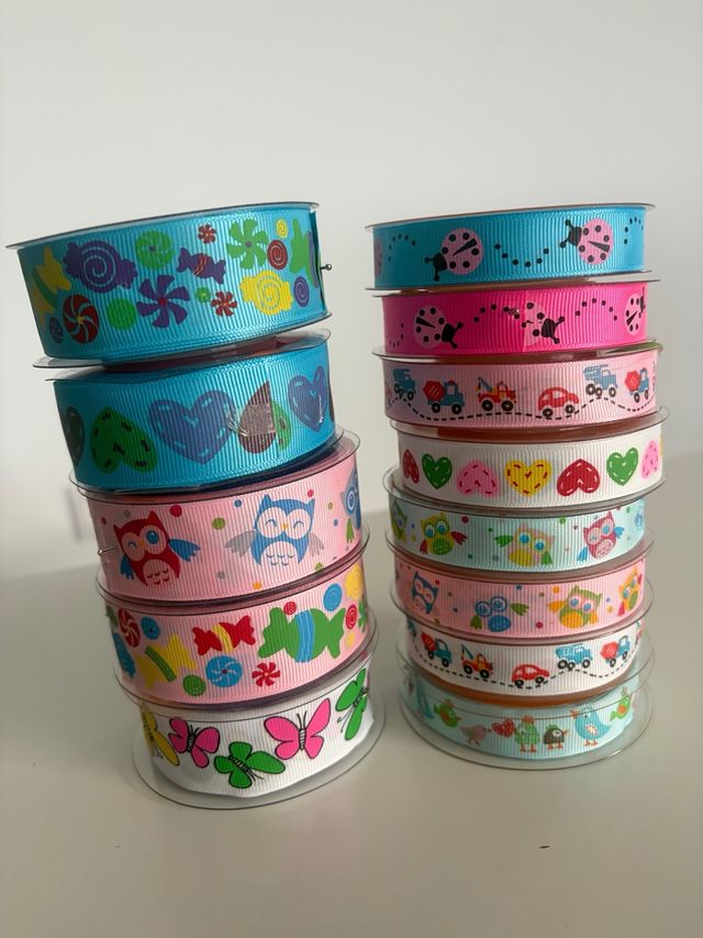 Detalles del productoLote de cintas de tela con divertidos estampados infantiles.