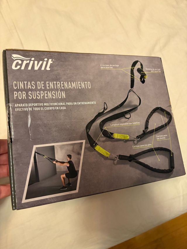 Detalles del productoCintas de entrenamiento por suspensión Crivit, perfectas para un entrenamiento efectivo de todo el cuerpo en casa. Están en muy buen estado.