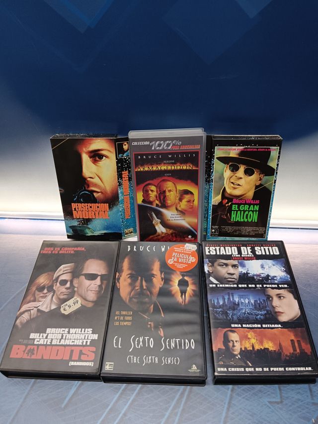 Detalles del productoBuen estado. 6 vhs contiene el pack : bandits, El gran Halcón, El sexto sentido, Armageddon, Estado de sitio, Persecución mortal ℹ️ VHS ✅ En buen estado. ⚠️ Precio no negociable. 💶 Pago: tarjeta, Paypal o Bizum. 📦 Envíos por Correos Express, Correos, Inpost. ℹ️ Págalo y haz la recogida en tienda si te he es mas cómodo. ✔️ Protección al comprador. 🔒 Tus datos están protegidos. 🛡️ Gracias por tu confianza. Tenemos más artículos similares y otros completamente diferentes. Si aúnas pedidos ahorrarás en gastos de envío. Véndelo Amazing te ofrece un periodo de dos semanas para su devolución si el artículo no es el mismo que salía r...