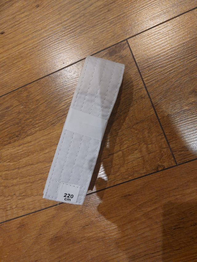 Cinturón blanco para artes marciales, con una longitud de 220 cm. - Color: Blanco - Longitud: 220 cm - Apto para diversas disciplinas de artes marciales.