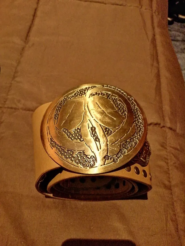 Cinturón Beige con Hebilla Dorada Grabada 20€ c/u