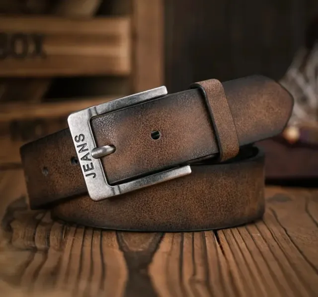 Cinturón de Cuero Camello Estilo Jeans 110cm