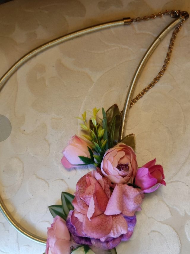 Cinturón dorado con flores rosas
