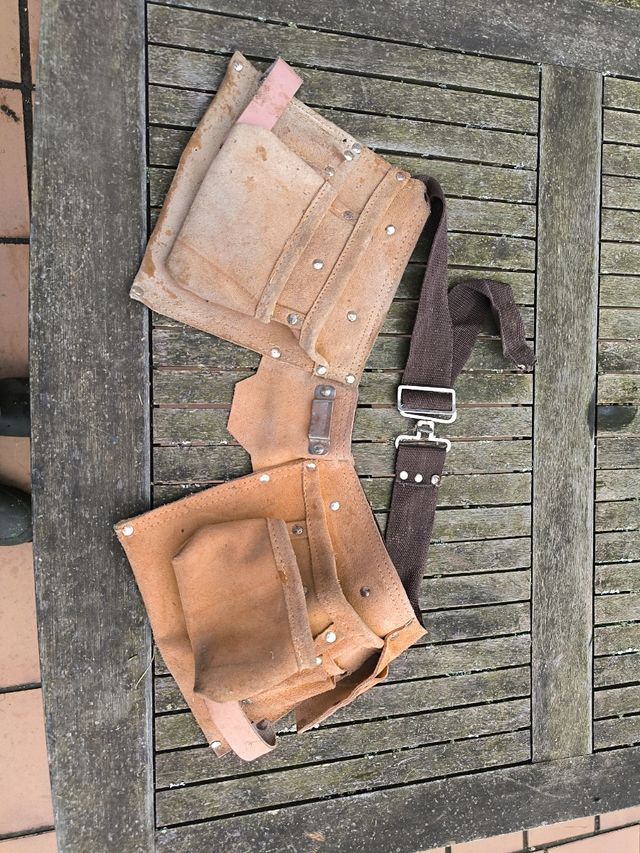 Detalles del productoCinturón porta herramientas de cuero usado, ideal para profesionales. Está en buenas condiciones, aunque muestra señales de uso.