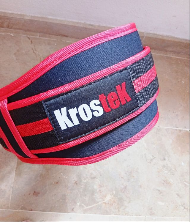Detalles del productoCinturón de gimnasio Krostek, ideal para tus entrenamientos. Es negro con detalles rojos.