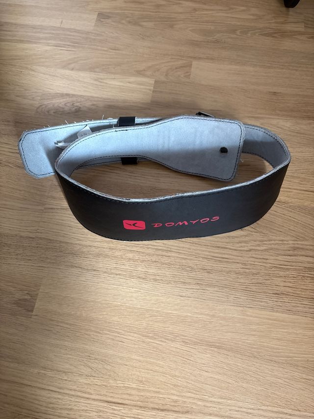 Detalles del productoCinturón de levantamiento de pesas de la marca Domyos. Está en perfecto estado.