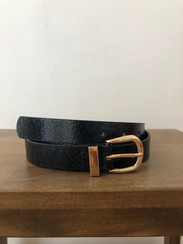 Cinturón Negro Hebilla Dorada Mujer