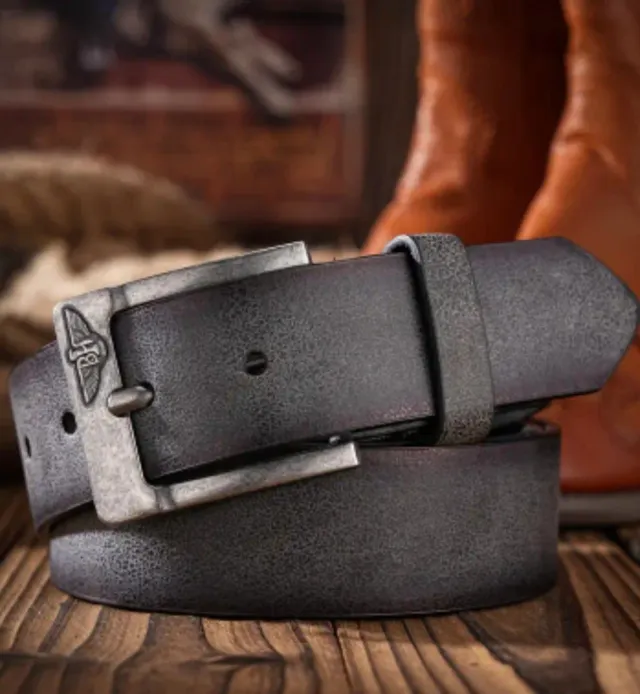 Cinturón Negro Vintage Hombre 110cm 3,5cm