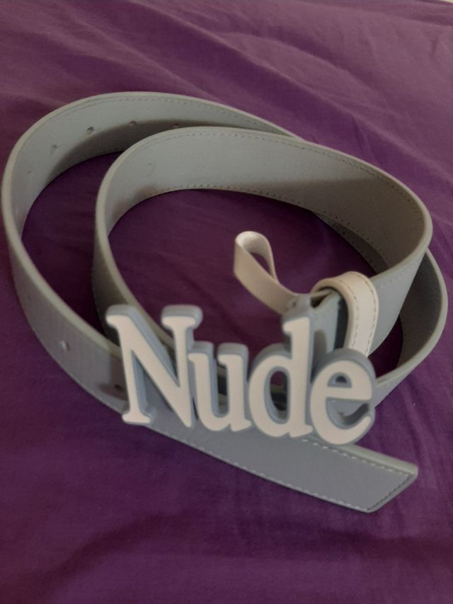 Cinturón Nude Project Piel Blanco y azul clarito.