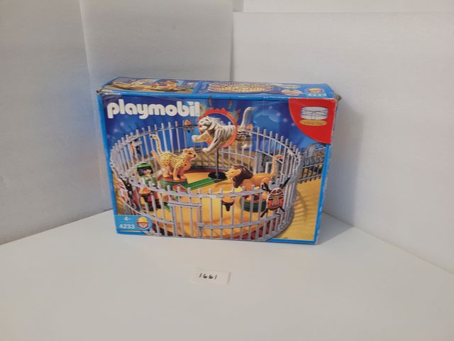 Detalles del productoJaula de circo domador de leones de Playmobil. Ref 4233 en su CAJA. Con los personajes y accesorios que se ven en las fotos.