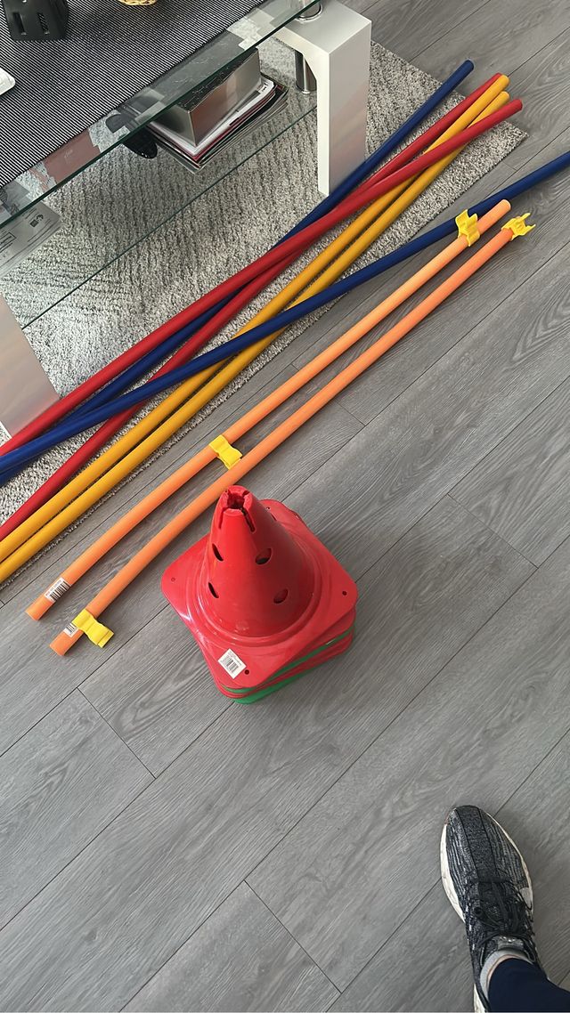 - 6 bastones de agilidad de colores (rojo, azul, amarillo, naranja).