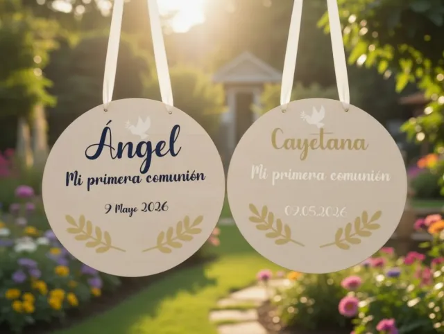 Círculo de madera personalizado para la Primera Comunión.