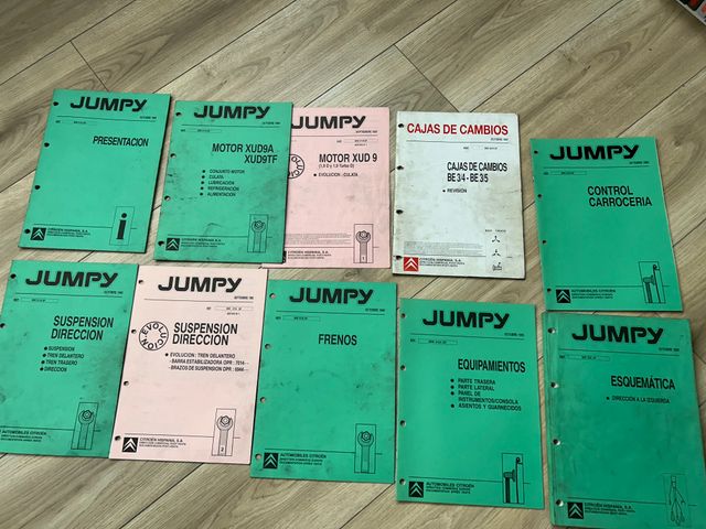 CARPETA ORIGINAL DE CONCESIONARIO CITROEN de reparacion y taller para la JUMPY DIESEL 1.9 XUD9A ATMOSFERICO Y XUD9TF TURBO DIESEL ILUSTRACCIONES DE TODAS LAS PIEZAS MOTOR, BLOQUE Y SOPORTES CIGUEÑAL CULATA Y ARBOL DE LEVAS ALIMENTACION ESCAPE TRANSMISION DIRECCION SUSPENSION DELANTERA Y TRASERA FRENOS DELANTEROS Y TRASEROS ENCENDIDO EQUIPO DE CARGA INSTALACION ELECTRICA INSTRUMENTOS CLIMATIZACION Y TODOS LOS ESQUEMAS ELECTRICOS COMPLETOS Para reparar completamente REGALO NOTAS TECNICAS DEL MODELO