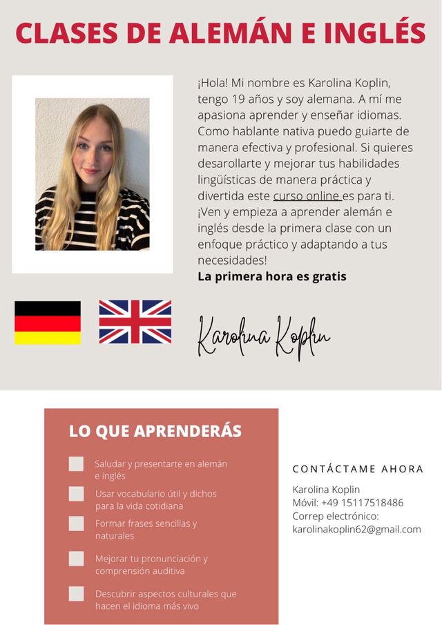 Doy clases de alemán e inglés online. Si te interesa, no dudes en contactarme☺️