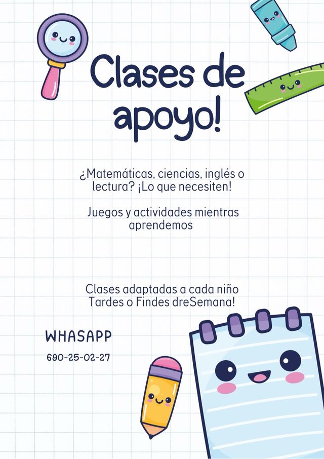 Detalles del producto¡Hola! 👋 ofrezco clases particulares para niños de todas las edades.