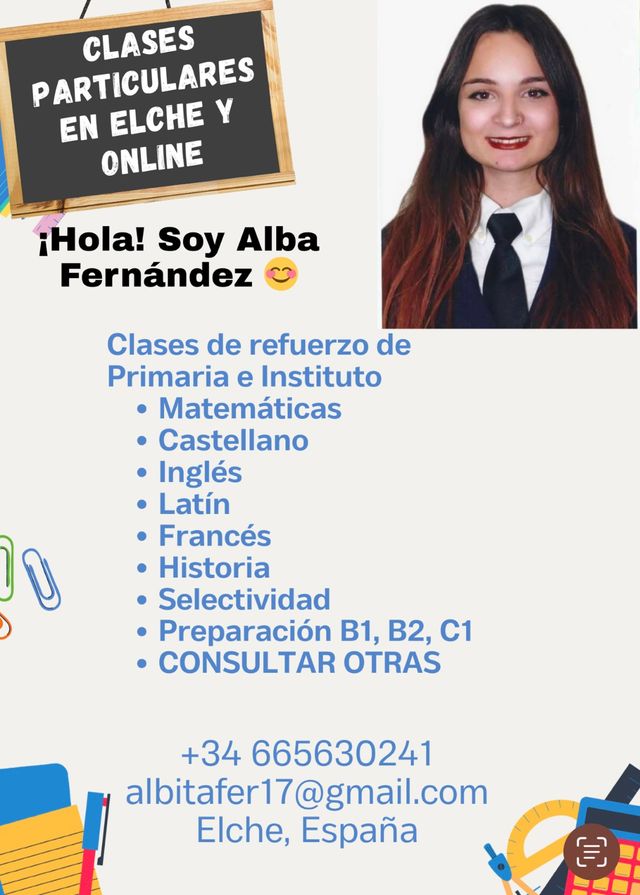 Detalles del productoHola! Soy Alba Fernández, filóloga inglesa con amplia formación y experiencia docente.