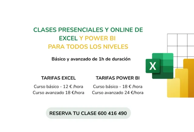 Detalles del productoClases particulares de Excel y Power BI tanto para adultos profesionales como para estudiantes.