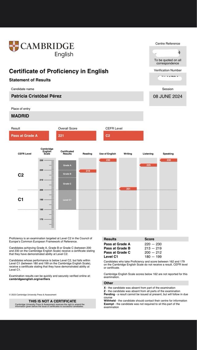 Detalles del productoSoy universitaria, actualmente cursando quinto de carrera, del doble grado de derecho y relaciones internacionales. El año pasado me saqué el C2 de Cambridge con la nota A (la más alta). Además he ido a un colegio americano, y vivido año y medio en USA, aparte de que cursó la carrera de forma bilingüe.