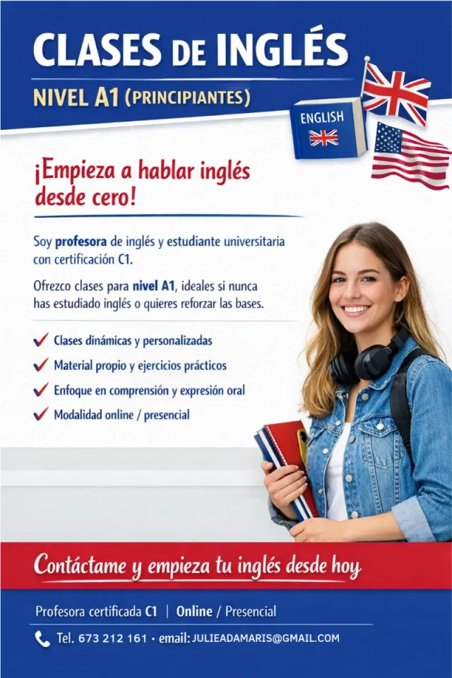 Si nunca has estudiado inglés o quieres reforzar las bases, estas clases son para ti 😊